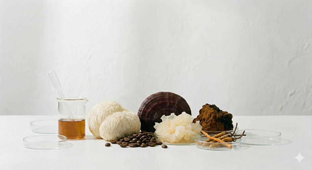 Our complex of premium fruiting-body mushrooms, dual-extracted for bioavailability and full spectrum potency, expertly crafted to blend seamlessly into coffee, without altering the taste. No fillers.